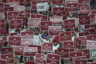 C'est dans un stade de plus de 60'000 place plein que la cérémonie a débuté à mi-journée. A l'intérieur se presse une foule vêtue aux couleurs du drapeau américain, beaucoup arborant des casquettes "Make America Great Again" (MAGA, Rendre sa grandeur à l'Amérique) des tee-shirts "Freedom" (liberté) ou "Charlie".