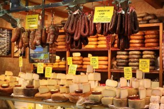 Sur les étals, on y découvre 100% des spécialités de Majorque et du reste de la péninsule ibérique. Mateo nous conseille de déguster la « Sobresada », une charcuterie typique Majorquine, réalisée avec de la viande de porc et de paprika, du boudin de la région ou encore du fromage Majorquin ou Minorquin… sans oublier le vin… excellent lui aussi !