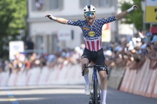 Impossible à rater sur les routes alémaniques avec son maillot de champion des Etats-Unis et sa moustache en fer à cheval, Quinn Simmons a lâché ses compagnons d'échappée à 20 km de la ligne. Le natif du Colorado a résisté seul à un peloton désireux de jouer la victoire d'étape, sous l'impulsion de l'Argovien Jan Christen et d'un autre Américain, Neilson Powless.