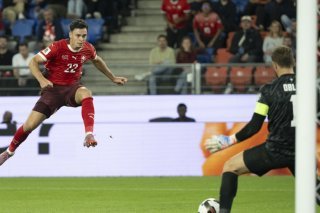 Fabian Rieder, ici avec l'équipe de Suisse contre la Slovénie, a marqué dès son premier match avec Augsbourg. KEYSTONE/GEORGIOS KEFALAS