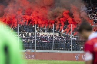 Les supporters du FC Bâle, lors de la rencontre du championnat de football de Super League entre le FC Sion et le FC Bâle ce samedi, 31 aout 2024 au stade de Tourbillon à Sion