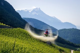 Principalement utilisé aujourd'hui pour le traitement des vignobles et des abricotiers, l’hélicoptère a prouvé son efficacité sur bien des plans. Sa capacité d’application et sa rapidité d’intervention lui ont également permis de remporter des batailles à plus large échelle. De la lutte d’urgence contre les hannetons, le mildiou de la pomme de terre, aux autres grandes cultures, l’hélicoptère a prouvé être un allié de taille aux côtés des agriculteurs suisses.
